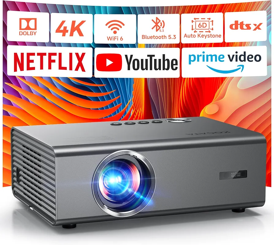 4K Projector with Netflix& Dolby Audio, 1200ANSI Auto Focus&6D Keystone Kogata Smart Projector with Built in Apps Outdoor