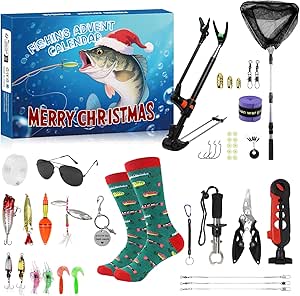 Advent Calendar for Men 2025, Fishing Advent Calendar, Fishing Equipment Advent Calendar, Fishing Gifts for Men, Women, Dad, Grandfather – 24 Fishing Accessories Christmas Gifts, Fishing Hooks
