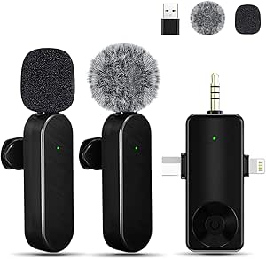 Bayanbulu Wireless Lavalier Microphones, 4-in-1 Universal Receiver for Android iPhone iPad Laptop & Camera, USB-C, Wireless Mini Microphone for Video Recording, Vlog, YouTube, TikTok