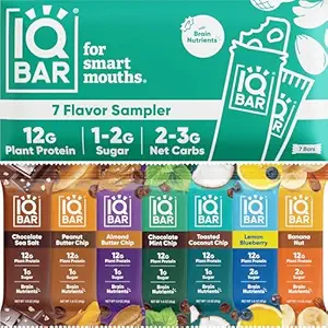 IQBAR Brain and Body Plant Protein Bars – 7 Bar Sampler Pack – Gluten Free, High Fiber, Vegan Snacks