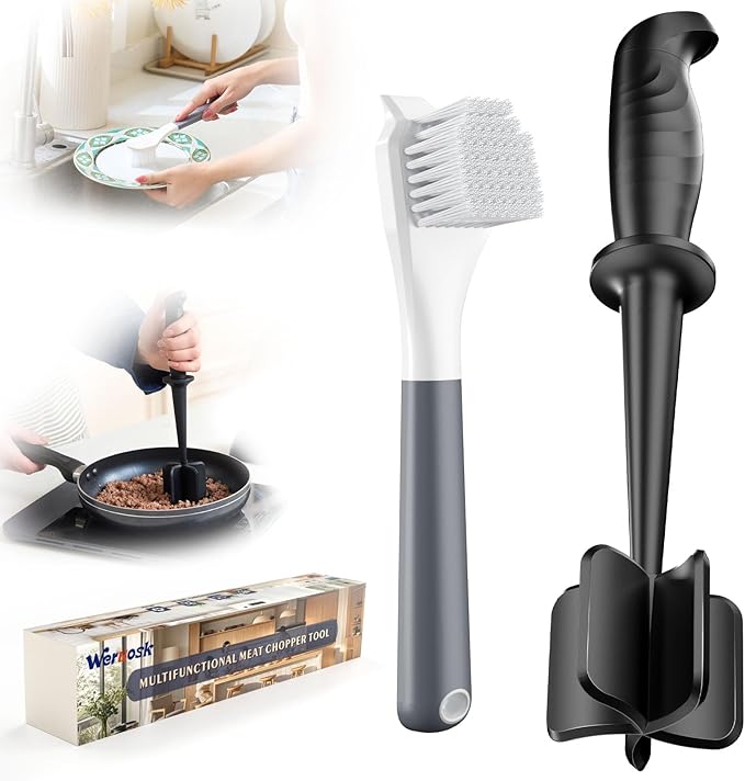 Meat Chopper PRO, Ground Beef Chopper Tool, Heat Resistant Meat Masher Tool for Hamburger Meat, Hamburger Smasher Tool, Non-Scratch Kitchen Utensils, Kitchen Tools With Cleaning Brush