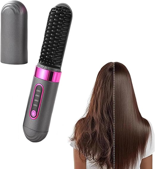 Wireless Straightening Brush, MCH Ceramic Heating Mini Straightener 4 Temp Settings with Negative Ion Hair Care 2x Faster Straightening Speed for Styling
